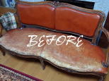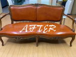 | 東京都港区からお持ち込み頂いたアンティークソファを張替えさせて頂きました。生地の劣化がひどかったのは座面だったので座面のみの張替えで合皮の色は合わせて張替えさせて頂きました。お喜び頂けて何よりです♪ | |